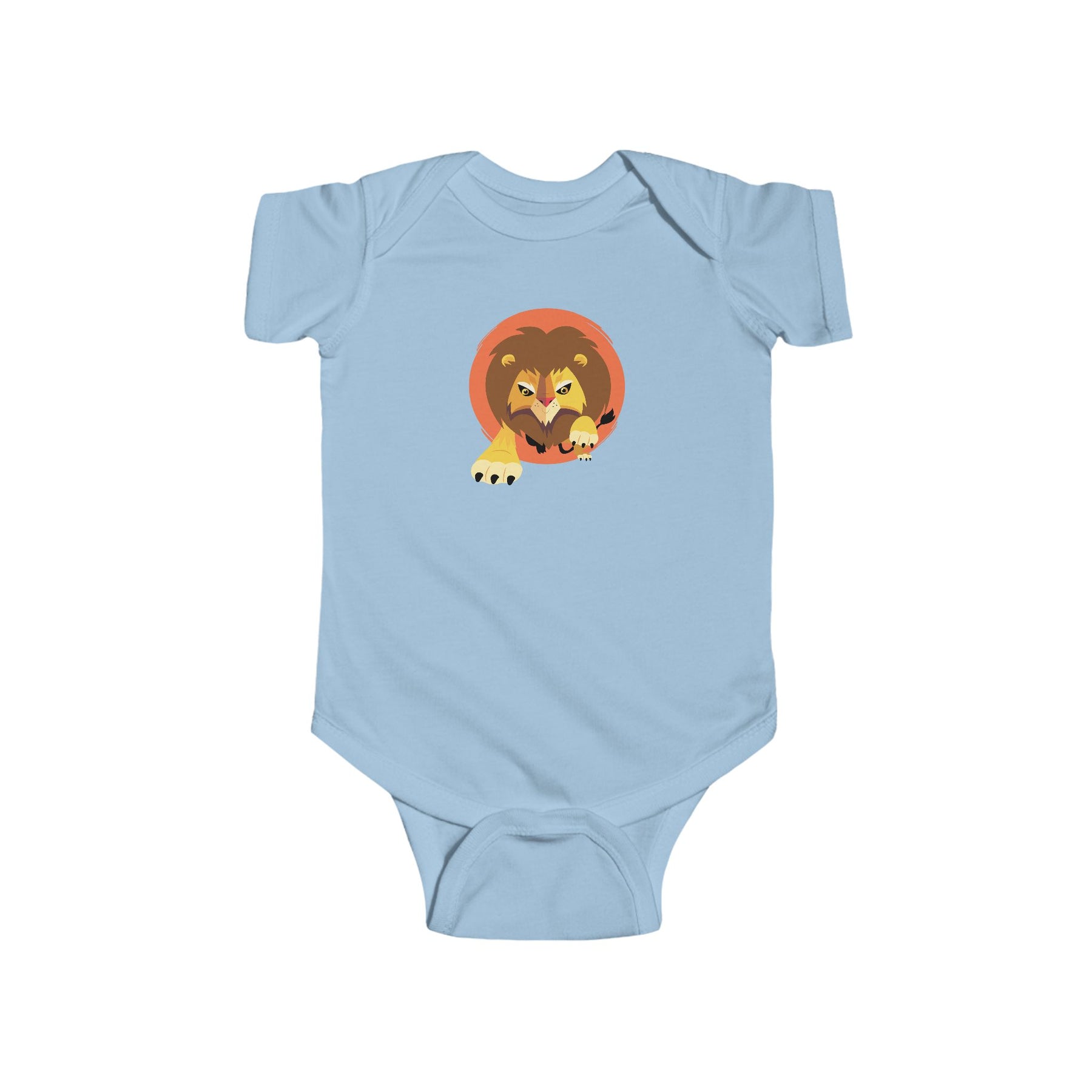 This cozy baby bodysuit is where your little one’s adventure begins! Featuring a playful lion pouncing with a vibrant sunset in the background, this ultra-soft cotton onesie brings a touch of the wild to cuddle time. With convenient plastic snaps for easy changing, it’s as practical as it is adorable—perfect for when your cub needs a little hands-on help!