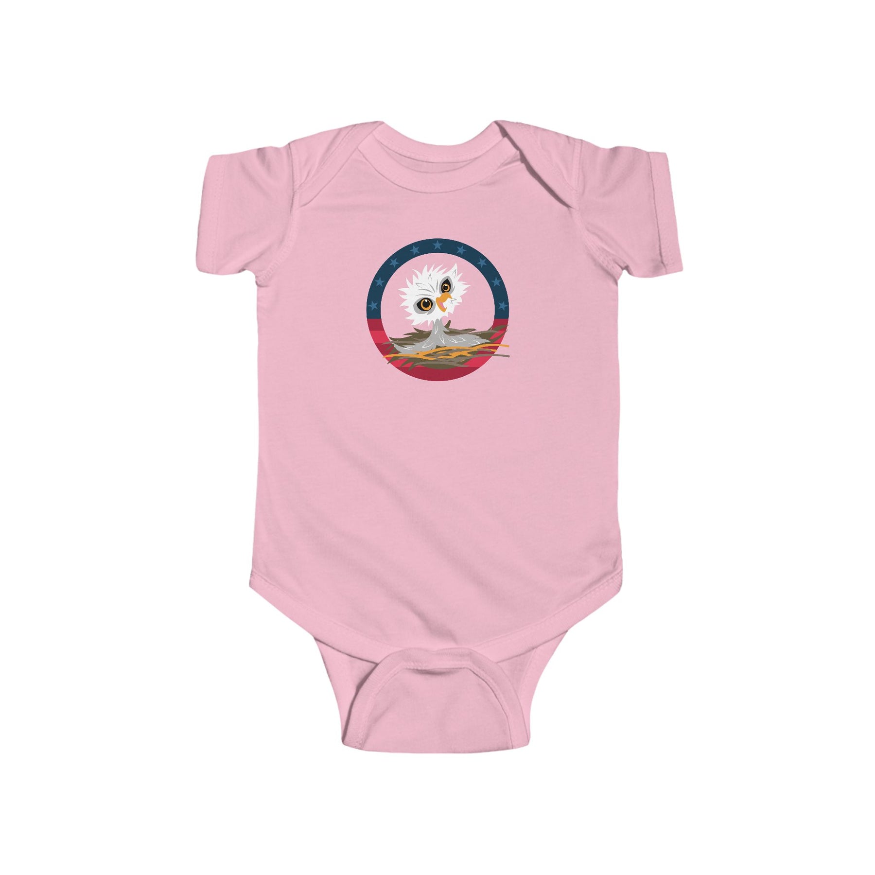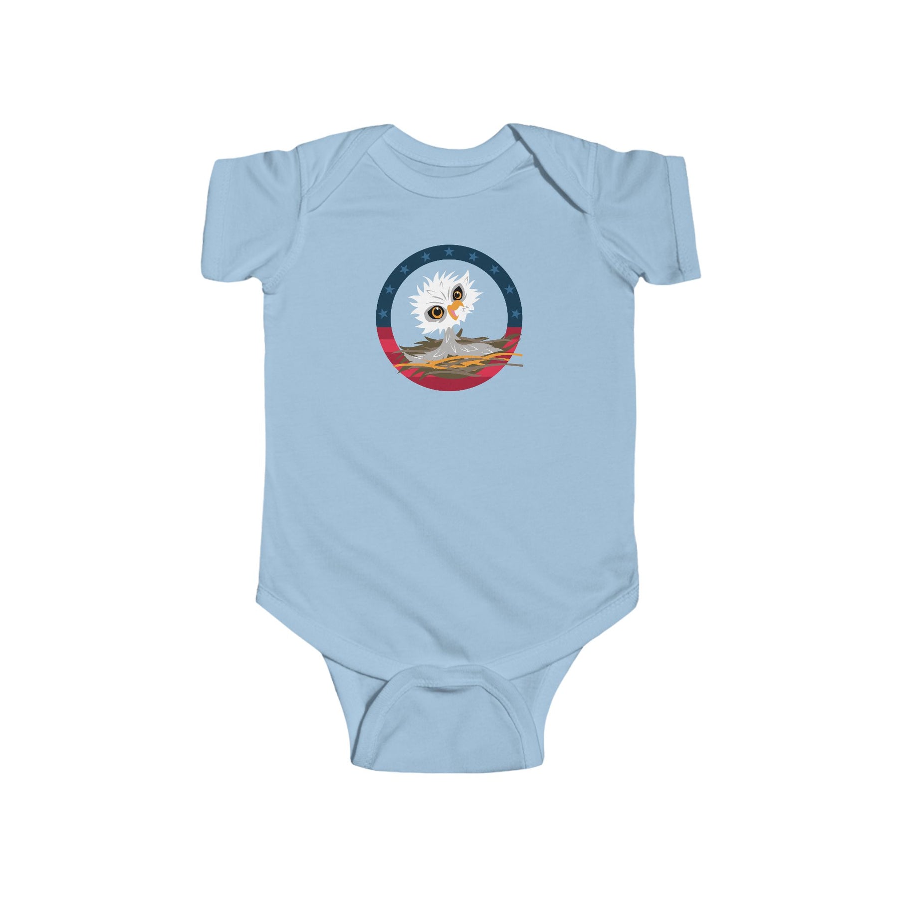 Let your little one hatch into style with the Wild America Eagle Nest Onesie. Featuring an adorably scruffy baby eagle perched on a patriotic background, this ultra-soft bodysuit is perfect for your tiniest patriot. With easy snap closures and comfy cotton fabric, it’s designed for cozy cuddles, photo ops, and red-white-and-blue pride from day one.