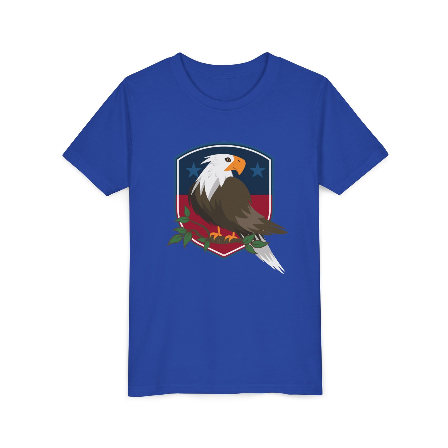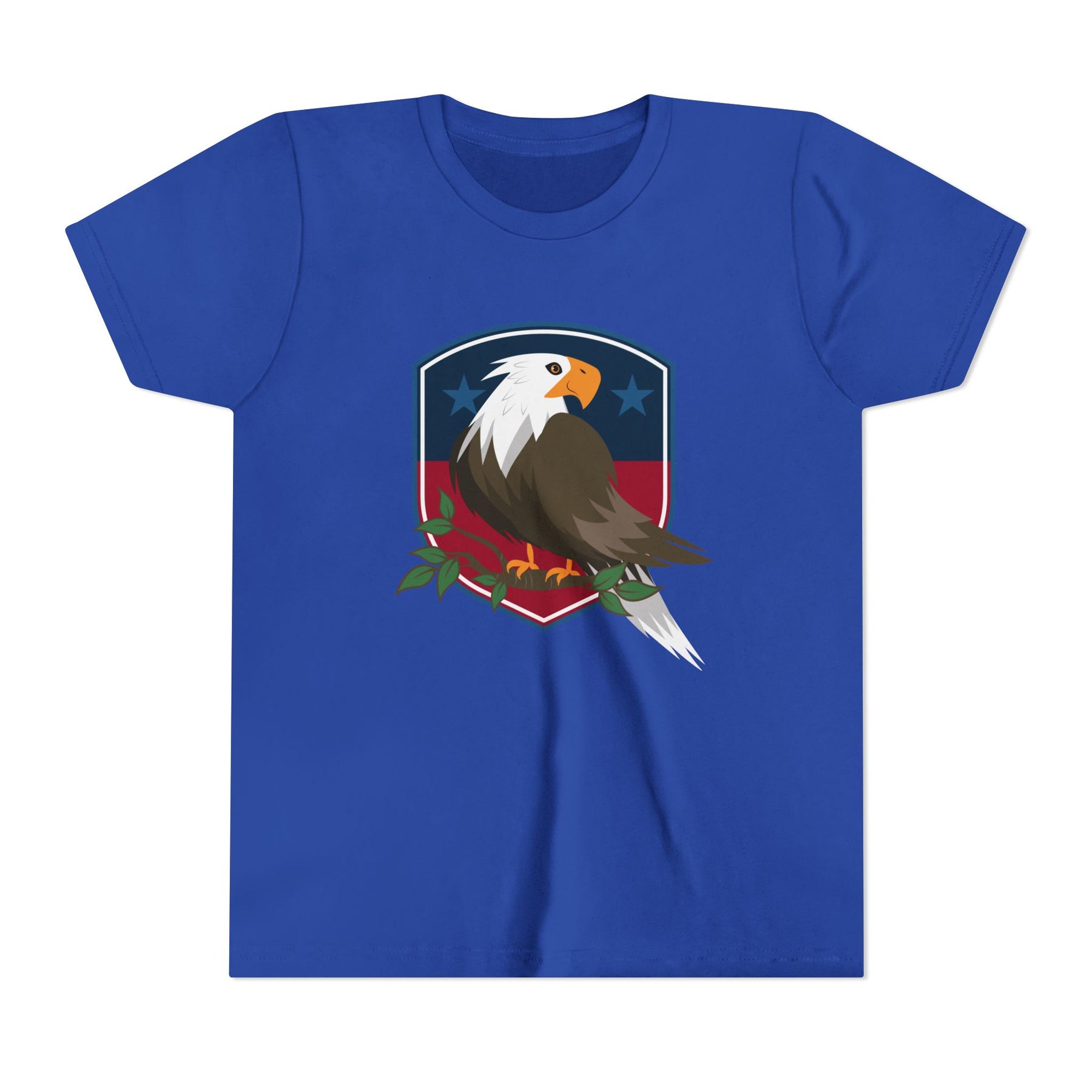 Inspire pride with the Wild America Shield Eagle Youth T-Shirt! This patriotic kids’ tee features a bold eagle design perched in front of a red, white, and blue crest. Made from ultra-soft, ring-spun cotton, it's perfect for 4th of July celebrations, school spirit days, or everyday adventure. A comfortable and durable tee for boys and girls who lead with heart.
