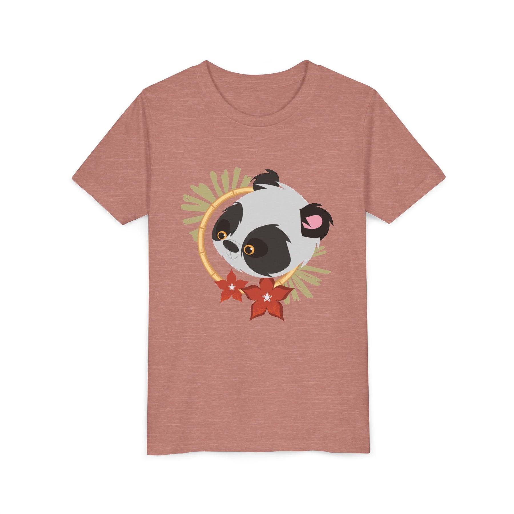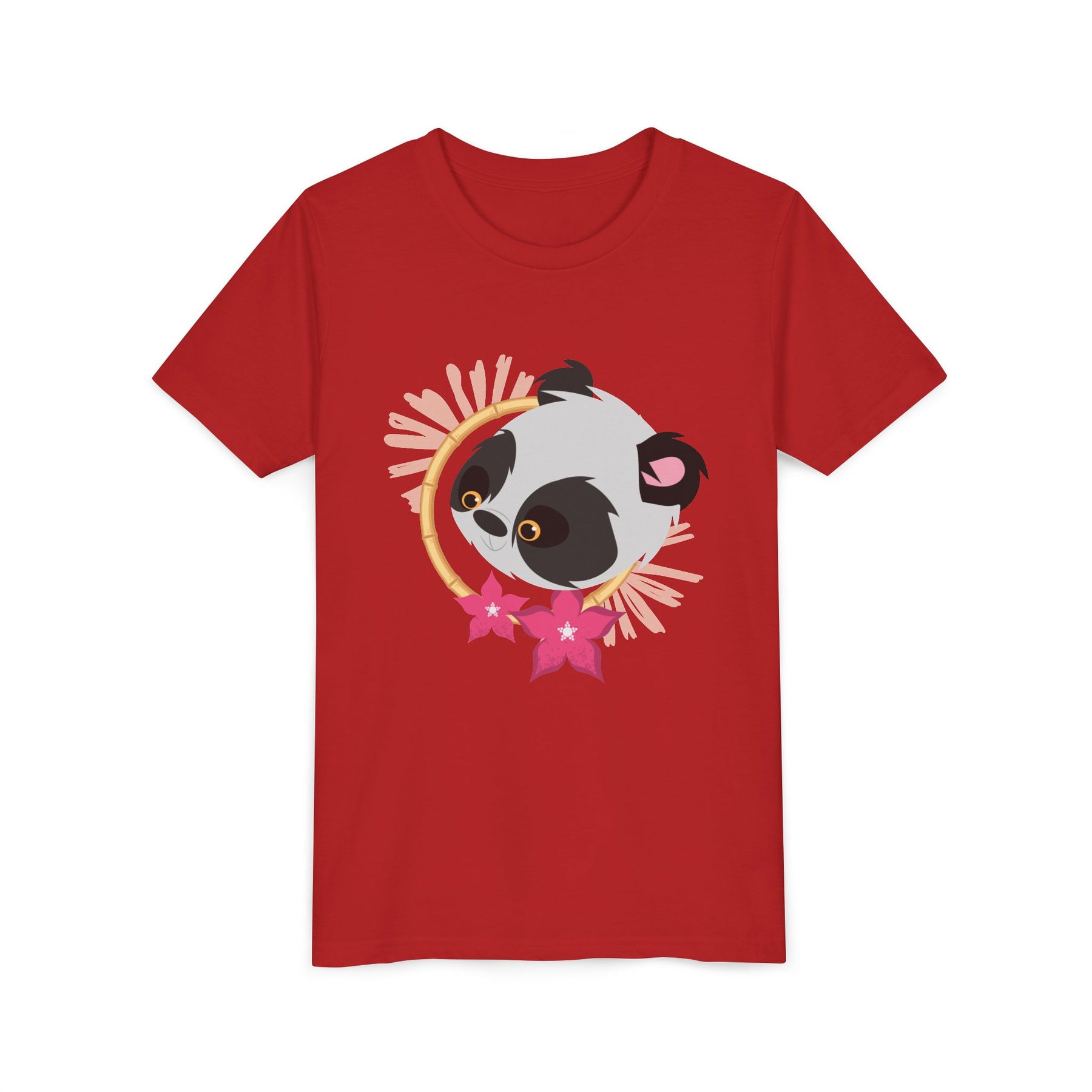 Some faces, like this sweet panda and the kids who wear it, are just asking for a hug! Bring on the charm with this ultra-soft custom youth t-shirt featuring a lovable panda face and colorful flowers. Designed for comfort and style, this tee is perfect for kids who roam the world with a touch of extra love.